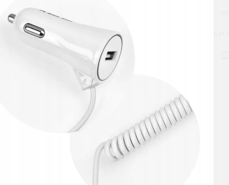 Oprócz standardowego wejścia USB, ładowarka posiada kabel z dedykowanym wejściem Lightning.