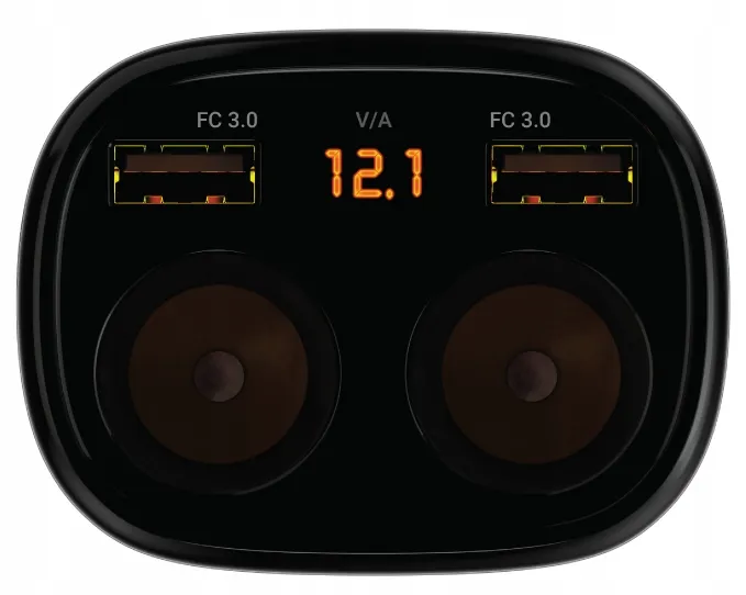 Navitel USP55 PRO to uniwersalny rozdzielacz gniazda zapalniczki samochodowej z funkcją ładowarki. Został wyposażony w dwa porty USB z szybkim ładowaniem oraz cyfrowy wyświetlacz, na którym wyświetlane są wskazania napięcia sieci pokładowej i poboru prądu.