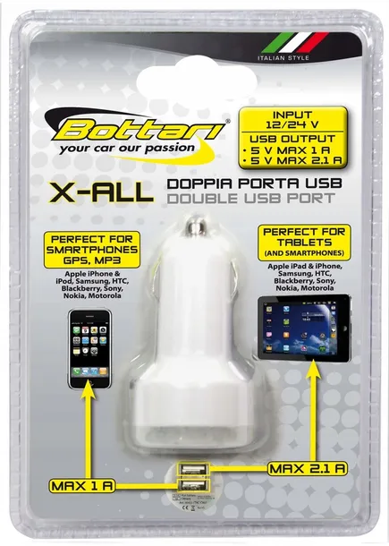 Samochodowa ładowarka, która pozwoli podczas jazdy podłączyć urządzenia, które wymagają prądu. Posiada podwójne gniazdo USB: 2,1 + 1 A. Wygląda elegancko, dzięki czemu nie szpeci wnętrza pojazdu.