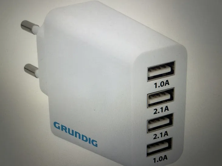 Kompaktowa ładowarka sieciowa GRUNDIG z czterema portami USB to idealne rozwiązanie dla szybkiego i efektywnego ładowania wielu urządzeń jednocześnie dzięki 4 portami USB o łącznej wydajności 4,5A . Trwała , niezawodna i łatwa w transporcie z łatwością nałdujesz swój smartfon , tablet czy inne urządzenie w domu.