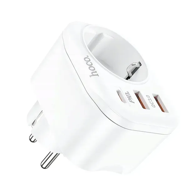 ✅ Ładowarka sieciowa Hoco posiada złącza USB-C oraz 2 USB-A Dzięki wbudowanemu gniazdu sieciowemu w standardzie europejskim można podłączyć do sieci kolejne urządzenie mimo wpiętej ładowarki. Wspiera standardy szybkiego ładowania.