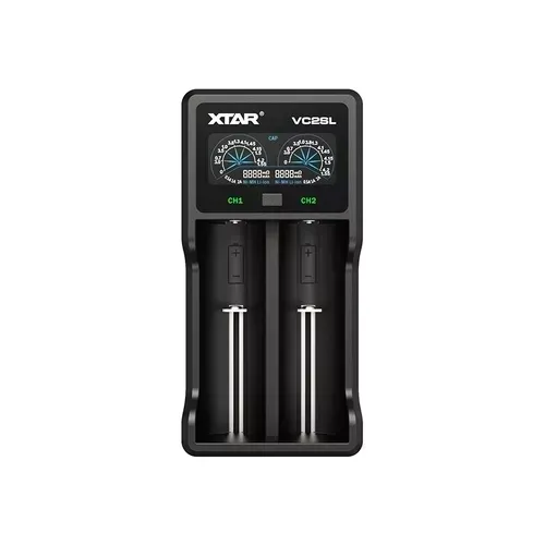 Profesjonalna, dwukanałowa, kompaktowa ładowarka procesorowa Xtar VC2SL do akumulatorów Li-ion i Ni-MH.Najważniejsze cechy OBSŁUGA ZABEZPIECZONYCH AKUMULATORÓW W ROZMIARACH 20700 oraz 21700 funkcja power bank ładowanie akumulatorów Li-ion sterowanym procesorem trzystopniowym proces ładowania TC/CC/CV ładowanie akumulatorów Ni-MH metodą CC dwa niezależne kanały ładowania trzy prądy ładowania - 1x 2A / 2x 1A / 2x 0,5A wyświetlacz VA LCD informujący pojemności ładowania, napięciu ogniwa, prądzie ładowania oraz rezystancji wewnętrznej ogniwa zasilana dowolną ładowarką z gniazdem USB o mocy 2A niewielkie wymiary - łatwa w przenoszeniu funkcja reaktywacji głęboko rozładowanych ogniw zabezpieczenia: zwarciowe, termiczne, przed odwrotną polaryzacją