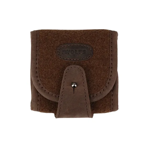 Ładownica na amunicję kulową mieści 5 szt. nabojów. Istnieje możliwość przymocowania jej do pasa. Zapięcie stanowi pasek zaciskowy z elegancką kulką. Efektu wizualnego dodaje wykończenie gustownymi szwami.
