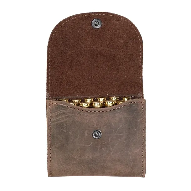 Ładownica otwarta na amunicję kulową mieści 11 szt. nabojów. Wykonana została z wysokiej klasy woskowanej skóry typu Pull Up. Istnieje możliwość przymocowania jej do pasa. Efektu wizualnego dodaje wykończenie materiału gustownymi szwami oraz lamówką.
