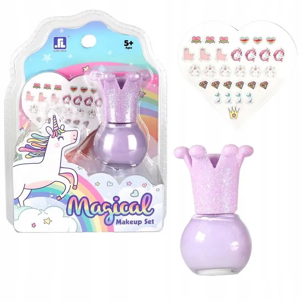 Lakier do paznokci + naklejki do zdobienia ich. Wymiary opakowania: 14 x 4 x 10 cm.