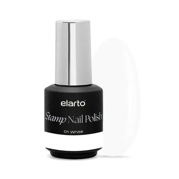 Idealny do graficznych motywów, negatywów, a także subtelnych, pastelowych kompozycji. Sprawdzi się zarówno w solowej roli, jak i w artystycznym duecie z kolorami o wysokim kontraście. Biały lakier elarto Stamp Nail Polish 01 White to również idealne tło dla zdobień – wzmacnia intensywność barw i dodaje projektom klarowności, zwłaszcza przy pastelach, neonach i półtransparentnych lakierach. Świetnie sprawdza się jako podkład pod jaśniejsze kolory, które bez niego mogłyby zginąć na płytce.