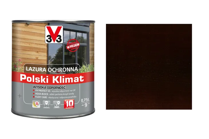 V33 Lazura Polski Klimat Wysoka Odporność 10 Lat V33 Ciemny Orzech 0,75L