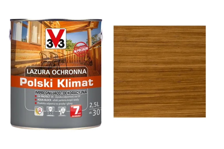 V33 Lazura Ochronna Klimat 7 Lat Impregnująco - Dekoracyjna Dąb Naturalny 2,5L