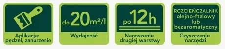 - Wydajność: do 20 m²/l przy jednokrotnym malowaniu