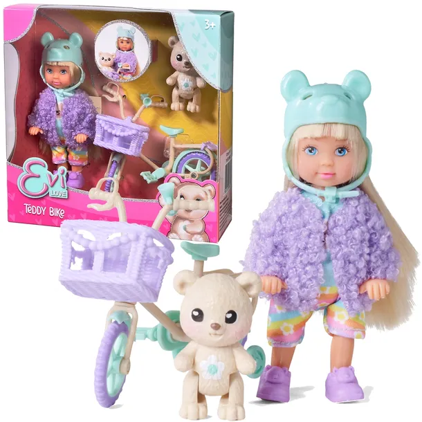 Evi Love Mały Zestaw Minilalka Rower z koszykiem i Miś