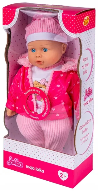 SMILY PLAY LALKA JULKA 39 CM W PUDEŁKU PREZENTOWYM ODGRYWANIE RÓL 2+Lalka Julka lubi, kiedy się nią opiekujesz i zabierasz ze sobą na spacery. Miękka lalka jest ubrana w czapkę, szalik, kombinezon z prążkowanymi spodniami oraz różową pikowaną kurteczkę z kapturem, obszytą prążkowanym materiałem w kolorze , po naciśnięciu na brzuszek:Mówi po polsku pełnymi zdaniamiŚpiewa piosenkęOpowiada bajkę o Złotowłosej i 3 misiachPodczas zabawy lalkami, zachodzą silne procesy sensoryczne, które są niezbędne do prawidłowego rozwoju dziecka. Dziecko, podczas zabawy lalką odbiera w mózgu sygnały, które następnie przetwarza i odpowiada, odpowiednio reagując. Lalki to nierozłączny element dzieciństwa. Zachęcają do aktywnej oraz kreatywnej zabawy, dają również możliwość stworzenia własnego świata. Dzięki nim uczymy się opiekuńczości oraz wrażliwości. Z lalką dziecku łatwiej jest wkroczyć w świat radości, strachu, euforii i , kołysanie, przytulanie lalki przynosi wiele pozytywnych emocji i pozwala na harmonijny rozwój. Poprzez zabawę pobudza rozwój systemów ść lalki 39 cmSpecyfikacja:SP83511Wiek: 24m+Kod: 5905375835118Wymiary produktu: szer. 20,5 cm., wys. 41 cm., gł. 11 : 3 x AG13 dołączoneBezpieczeństwo: EN71-1, EN71-2, ENT1-3, EN62115Importer: Anek dla Dzieci