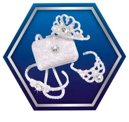 - białe buty, lalka Steffi, naszyjnik, pasek, pierścionek, tiara, torebka