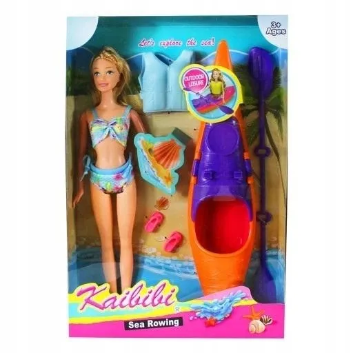 Duży zestaw z lalką w stroju kąpielowym, kajakiem i akcesoriami!