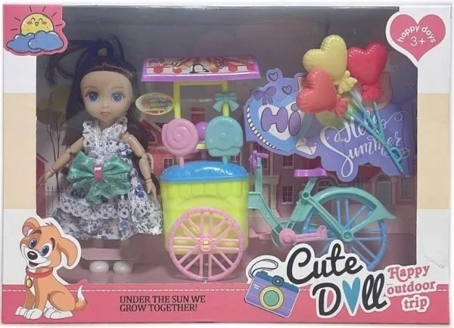 Wyrusz na niezapomnianą przygodę z zestawem "Happy Outdoor Trip"! Ten uroczy komplet zawiera piękną lalkę o długich włosach, ubraną w kwiecistą sukienkę. W zestawie znajdziesz również stylowy rowerek z kolorowym wózkiem z lodami i lizakami, idealny na letnie eskapady. Dodatkowe akcesoria, takie jak balony w kształcie serc, inspirują do tworzenia własnych historii. Zestaw rozwija wyobraźnię i zachęca do aktywnej zabawy. Idealny prezent dla dzieci powyżej 3 roku życia.