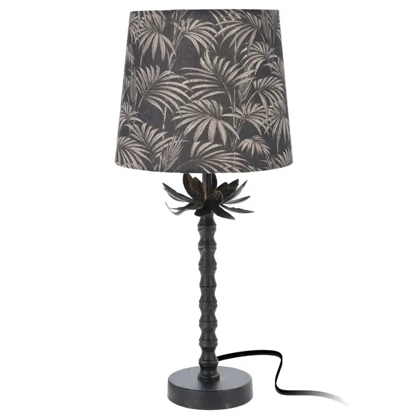 ✅ Wyjątkowość lampy stanowi czarny abażur z motywem liści w kolorze złota.