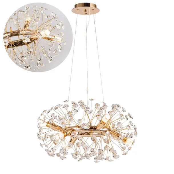Lampa kryształowa wisząca GLAMOUR E14 żyrandol MONA złoty nad stół jadalnia