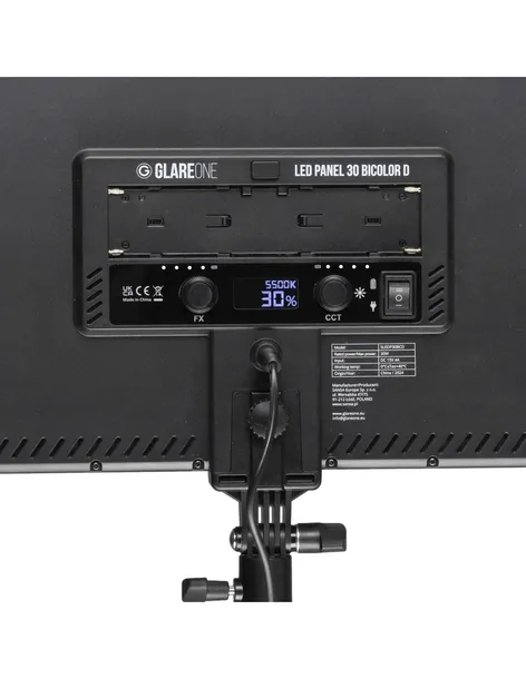 Panel GlareOne można zasilać na dwa sposoby: za pomocą zasilacza sieciowego (dołączonego w zestawie) lub baterii NP-F, co daje dużą elastyczność. Możliwość pracy zarówno z zasilaniem sieciowym, jak i akumulatorami sprawia, że panel jest bardzo praktyczny i mobilny, nawet w miejscach z ograniczonym dostępem do prądu.