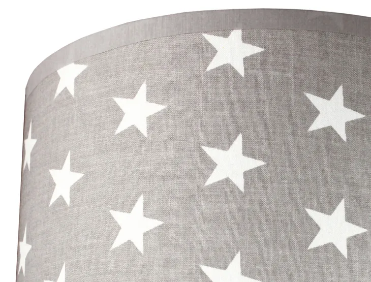 Abażury w lampie wykonane z tkaniny, podklejonej od wewnątrz specjalną białą folią odporną na temperaturę.