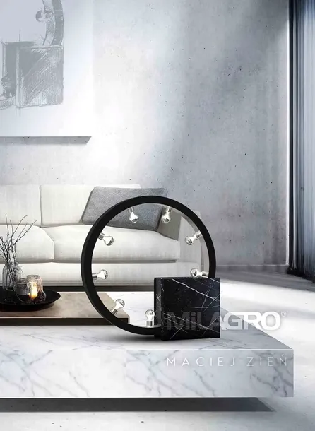 Inspiracji do powstania przepięknej linii Cassiopeia można upatrywać w astronomiiKolekcja identyfikowana jest z gwiazdozbiorem o tej samej nazwie. I tak jak około 90 gwiazd widocznych na niebie, tak i lampy nie z tej ziemi pięknie rozświetlą wnętrza mieszkań i domów. Inspiracji do powstania tej linii należy szukać także w teatrze, a dokładniej w garderobach teatralnych. Nieodłącznym elementem ich wystroju są toaletki ozdobione lustrami oświetlonymi w charakterystyczny i jednocześnie wyjątkowy sposób. Z tego wydawać by się mogło niecodziennego połączenia powstały lampy, które zachwycają nowoczesnym, ekskluzywnym designem, miękkimi liniami i szlachetnymi materiałami. Wykonano je między innymi ze znanego i wykorzystywanego już w starożytności marmuru Carrara. Naturalny kamień pokryty szarymi smugami pięknie komponuje się ze złotymi i srebrnymi detalami lamp, doskonale wpasowując się w panujące obecnie trendy w wystroju wnętrz. Ekskluzywna, mała lampa stojąca zainspirowana gwiazdozbiorem Cassiopeia. Wyróżniają ją miękkie linie i kwadratowa podstawa wykonana z czarnego marmuruNero Marquina. Połączenie czerni ze srebrnymi detalami.