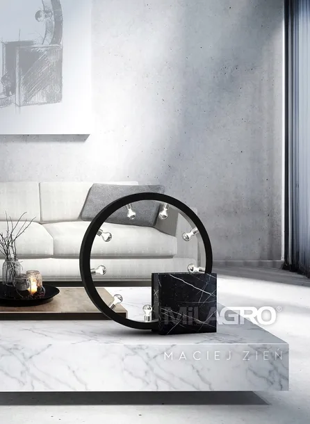 Z tego wydawać by się mogło niecodziennego połączenia powstały lampy, które zachwycają nowoczesnym, ekskluzywnym designem, miękkimi liniami i szlachetnymi materiałami. Wykonano je między innymi ze znanego i wykorzystywanego już w starożytności marmuru Carrara. Naturalny kamień pokryty szarymi smugami pięknie komponuje się ze złotymi i srebrnymi detalami lamp, doskonale wpasowując się w panujące obecnie trendy w wystroju wnętrz.