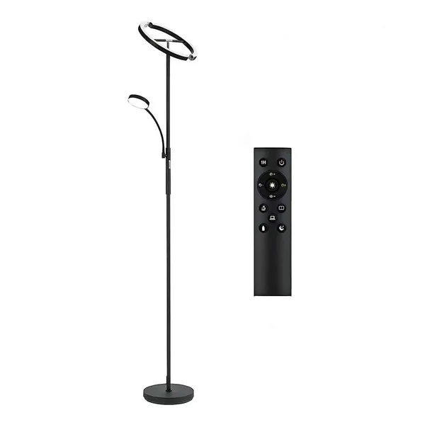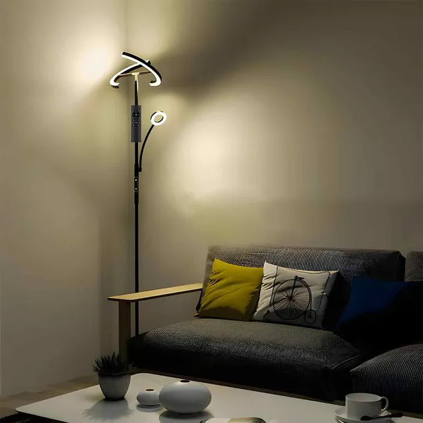 ✅Nowoczesna lampa stojąca LED w kolorze czarnym doskonale sprawdzi się w salonie, biurze lub sypialni, oferując zarówno styl, jak i funkcjonalność. Wyposażona w elastyczne ramię do czytania oraz zdalne sterowanie pilotem, umożliwia regulację jasności i barwy światła. Stabilna podstawa zapewnia bezpieczeństwo, a energooszczędna technologia LED gwarantuje długą żywotność. Dwa źródła światła w jednej lampie Lampa podłogowa została wyposażona w dwa niezależne źródła światła – główne o mocy 20W oraz dodatkową 7W lampkę do czytania. Dzięki temu możesz rozświetlić całe pomieszczenie lub skupić światło na konkretnej przestrzeni, np. do czytania czy pracy. Oba elementy można regulować, co pozwala dostosować kąt padania światła do własnych potrzeb. Łatwa obsługa – pilot i dotykowy przełącznik Lampą można sterować na dwa wygodne sposoby – dotykowo lub za pomocą pilota. Regulacja jasności oraz temperatury barwowej pozwala stworzyć odpowiednią atmosferę w zależności od pory dnia i nastroju. Intuicyjne sterowanie sprawia, że zmiana ustawień jest szybka i komfortowa. Bezpieczna i stabilna konstrukcja Dzięki solidnej i ciężkiej podstawie lampa stoi stabilnie, co minimalizuje ryzyko przypadkowego przewrócenia. Jest to szczególnie istotne w domach, gdzie są dzieci lub zwierzęta. Wysokiej jakości materiały zapewniają trwałość i estetyczny wygląd na długie lata. Łatwa instalacja Montaż lampy jest niezwykle prosty i zajmuje tylko kilka minut. Wszystkie niezbędne elementy znajdują się w zestawie, a intuicyjna konstrukcja pozwala na szybkie złożenie lampy bez potrzeby używania specjalistycznych narzędzi. Po zamontowaniu można od razu cieszyć się jej funkcjonalnością. Pilot magnetyczny – wygoda na co dzień Pilot do sterowania lampą został wyposażony w magnetyczny uchwyt, dzięki czemu można go przymocować do metalowych powierzchni, np. lodówki czy lampy. Dzięki temu zawsze będzie w zasięgu ręki i nie zgubi się wśród innych przedmiotów. To praktyczne rozwiązanie, które ułatwia codzienne korzystanie z lampy. Jak sparować pilota z lampą? Włóż baterie do pilota. Naciśnij i przytrzymaj przycisk zasilania przez 5 sekund. Podłącz lampę do prądu. Gdy dioda LED zacznie migać, parowanie zostało zakończone. Jeśli pilot przestanie działać po pewnym czasie, powtórz parowanie – odłącz lampę, przytrzymaj przycisk ON/OFF i jednocześnie podłącz wtyczkę do gniazdka. Zawartość zestawu: Lampa podłogowa LED (20W) z regulacją kąta świecenia Elastyczna lampka do czytania (7W) Pilot zdalnego sterowania z magnetycznym uchwytem Stabilna podstawa zapewniająca bezpieczeństwo Zasilacz i przewód zasilający Instrukcja obsługi ułatwiająca montaż i konfigurację Lampa jest zapakowana w eleganckie pudełko, dzięki czemu świetnie nadaje się również na prezent!