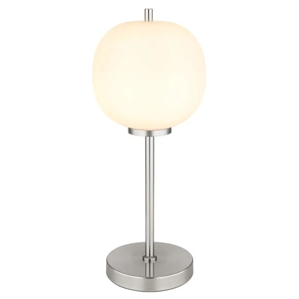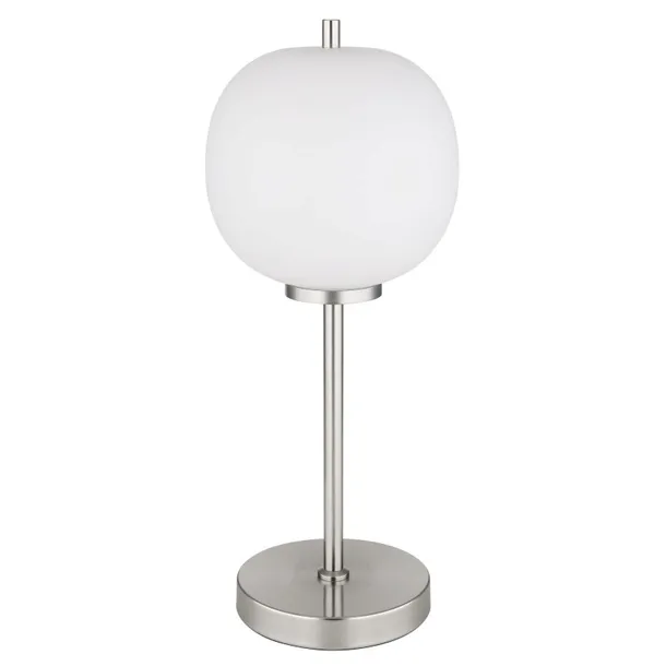 Lampa stołowa, metal nikiel mat, szkło opal, przełącznik kołyskowy na kablu, ?: 185mm, Wys: 450mm, długość kabla 1500mm, nie zawiera 1x E14 40W 230V