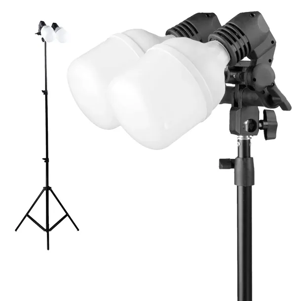 Podwójna oprawa, przeznaczona jest do żarówek światła stałego i kompaktowych lamp błyskowych z gwintem E27. Stanowi ona element łączący wszystkie komponenty zestawu. Istnieje możliwość zamocowania na niej parasolki oświetleniowej (fotograficznej). Oprawka zaprojektowana jest do montażu na statywach oświetleniowych. Zaletą jest lekkie i solidne tworzywo, co zapewnia jej wytrzymałość przez długi czas. Oprawa w porównaniu z innymi modelami posiada niewielkie wymiary i jest bardzo wygodna w regulacji. Głowica jest ruchoma w zakresie +80°/-80°. Przewód dwużyłowy ma długość 1,4m.
