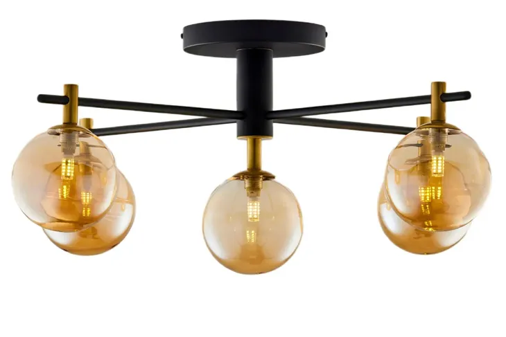 Lampa Sufitowa FIGARO Czarny Bursztynowy Szklane Klosze 5xG9