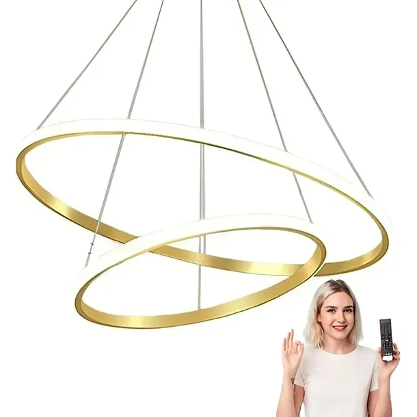 LAMPA SUFITOWA LED WISZĄCA ŻYRANDOL 2 RING KRĘGI Z PILOTEM ZŁOTA 40CM