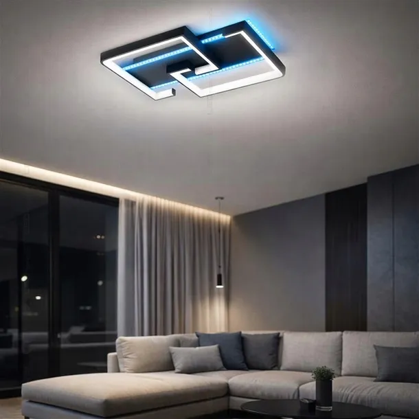 Nowoczesna lampa sufitowa LED w geometrycznym, minimalistycznym stylu to idealne rozwiązanie do salonu, sypialni, jadalni, pokoju młodzieżowego czy biura. Połączenie klasycznego światła CCT z efektownym podświetleniem RGB pozwala dopasować klimat wnętrza do każdej okazji.