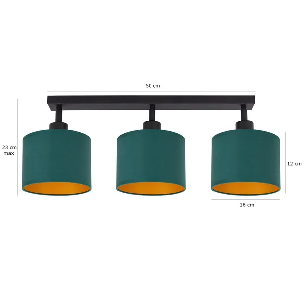 LAMPA SUFITOWA PODŁUŻNA PRZEGUBY ABAŻUR TKANINA ZIELONY-ZŁOTY