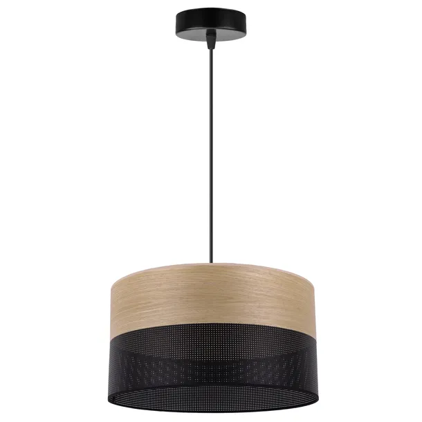 ✅ Elegancki abażur z naturalnego, dębowego forniru w złocistym odcieniu, połączonego z czarnym akcentem - duet zachwycający funkcjonalnością i stylem!