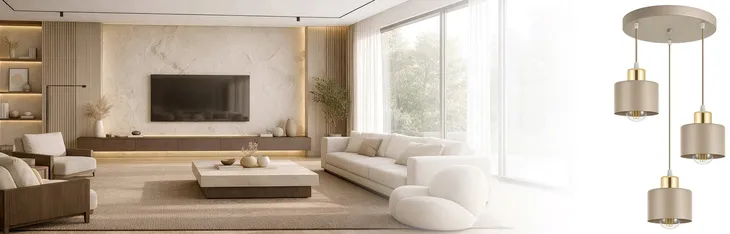 ⭐ Nowoczesna lampa wisząca 3-punktowa E27 – beż + złoty detal | minimalistyczny design