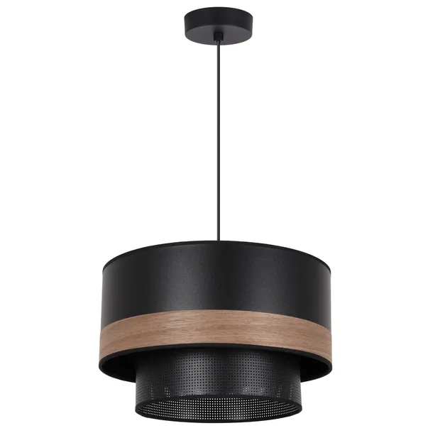 ✅ Elegancki abażur z naturalnego, orzechowego forniru, połączonego z czarną siatką - duet zachwycający funkcjonalnością i stylem!