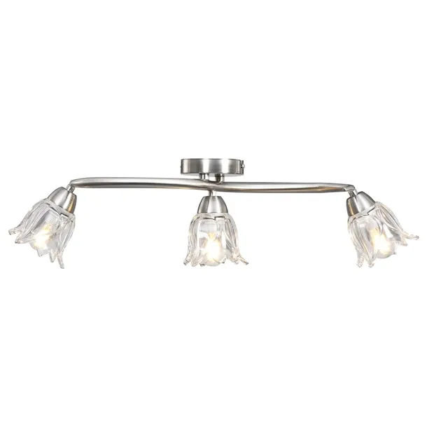 Lampę możesz z łatwością zamontować na dowolnym suficie dzięki wytrzymałej metalowej podstawie. Trzy splątane chromowane rurki stalowe i klosze z przezroczystego szkła w formie tulipanów dopełniają jej elegancki wygląd. Satynowe, chromowane wykończenie nadaje tej lampie nowoczesny wygląd, dzięki czemu idealnie sprawdzi się do salonu lub sypialni w każdym stylu. Można ją również bez problemu konserwować i czyścić wilgotną ściereczką.