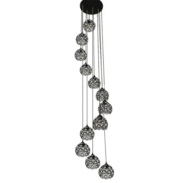 LAMPA WISZĄCA ANTRESOLA CZARNA AŻUROWA KULE 12 KLOSZY 200CM DARMAT LIGHT