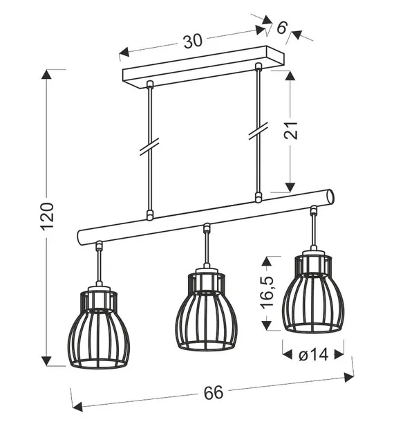 Lampa Wisząca BERNITA Nad Stół Loft 3X60W E27 Drewno Metal Klosze Klatki
