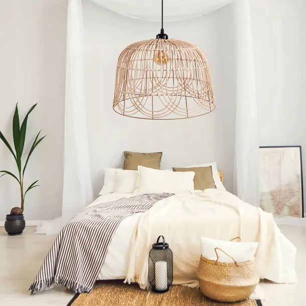 Prosty styl sprawia, że lampa będzie pasowała do każdego pomieszczenia - zarówno do sypialni, salonu czy pokoju dziecięcego. Bambusowy abażur lampy przepuszcza delikatne, miękkie światło, co tworzy przyjemną atmosferę w pomieszczeniu.