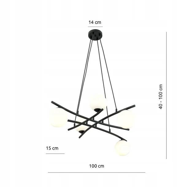 Lampa Wisząca ESSA 5 Czarny/Opal Metalowa Wisząca