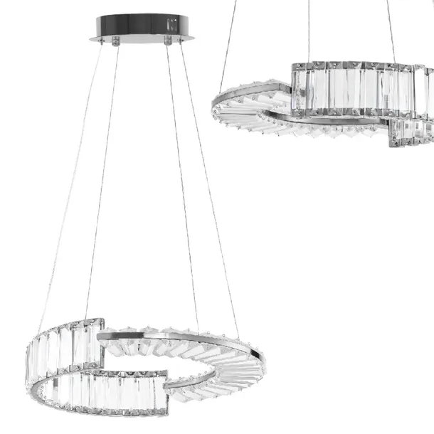 ?? Dodaj odrobinę luksusu i blasku do swojego wnętrza dzięki nowoczesnej kryształowej lampie wiszącej LED, która zachwyca elegancją oraz funkcjonalnością. Oryginalny design w kształcie okrągłych pierścieni pokrytych połyskującymi kryształami sprawia, że lampa stanie się centralnym punktem każdego pomieszczenia.