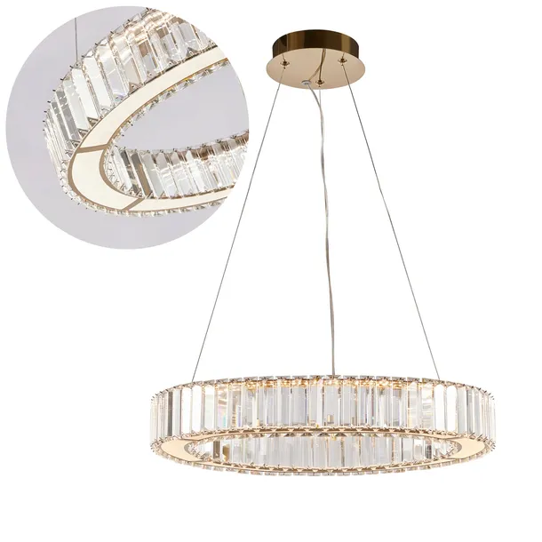 Lampa wisząca LED ring złota kryształ 50cm sufitowa nad stół kuchnia WOBAKO