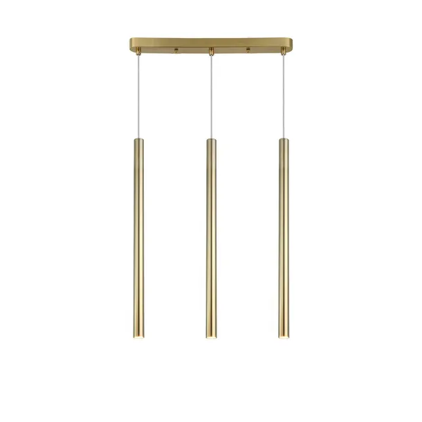 Lampa składa się z trzech wąskich kloszy w kształcie długich tub, na końcu których znajduje się wejście na żarówkę o gwincie G9. Imponująca długosć lampy sprawia, że będzie idealną propozycją nad jadalniany stół, do salonu, bądź sypialni. Lampa Lungo 3 w złotym kolorze będzie idealną propozycją oświetleniową do nowoczesnych aranżacji wnętrz.