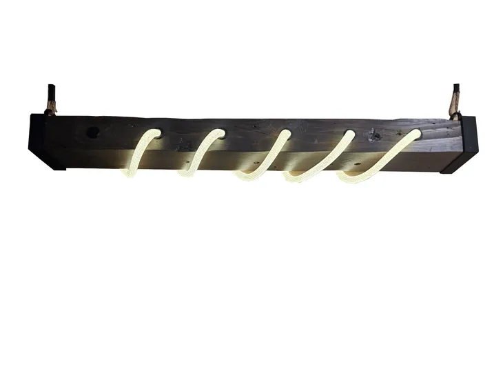 Lampa wisząca „Lina Lux Beam” – drewniana belka z liną świetlną LED