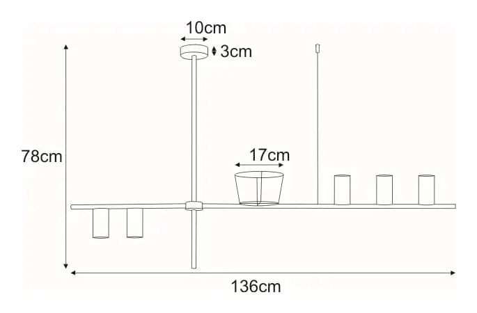Lampa wisząca marki Kaja model K-4756 z serii ROCCO. Materiał wykonania podstawy/zawiesia: metal. Materiał wykonania klosza: brak danych. Kolor/kolory: czarny. Wymiary: wysokość 78 cm, szerokość 136 cm, głębokość 17 cm. Liczba źródeł światła: 5. Typ oprawy: GU10 o maksymalnej mocy jednostkowej 35W. Dodatkowe informacje: stopień ochrony IP20. Brak żarówek w zestawie..Lampa posiada dwufazowy obwód.