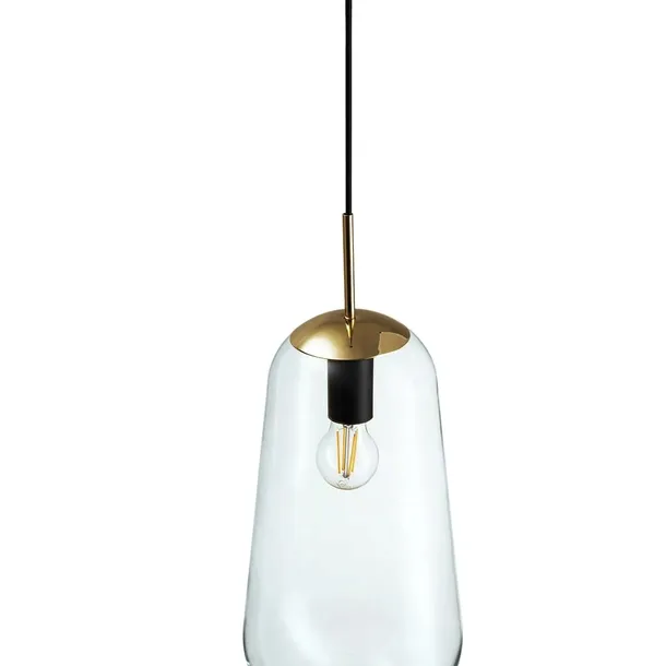 Oprawa wykonana w stylu nowoczesnym. Lampa PEAR wykonana z metalu w kolorze czarno złotym. Wymiary produktu wynoszą: 22 cm szerokości, 22 cm długości, oraz 195 cm wysokości. Produkt posiada I klasę ochronności elektrycznej. Klosz został wykonany ze szkła w kolorze transparentnym. Oprawa przystosowana pod 1 żarówke E27 o maksymalnej mocy 25W. Produkt z możliwością regulacji wysokości. Oświetlenie zostało wykonane z myślą doświetlenia naszej przestrzeni kuchennej. Oprawa ze szczelnością IP20. Produkt sprzedawany jest bez żarówek.