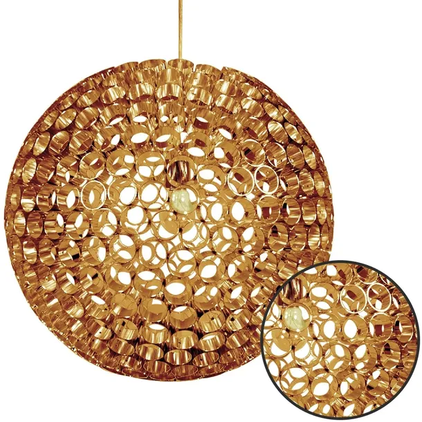 - Przyszłościowa lampa, futurystyczny zwis metalowy w kolorze miedzianym odświeża i unowocześnia wnętrze;