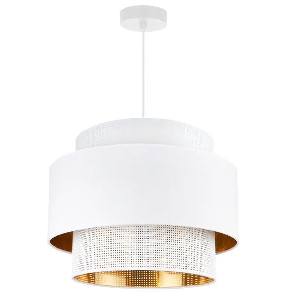 LAMPA WISZĄCA SUFITOWA BIAŁY ABAŻUR ZŁOTY ŚRODEK DO SYPIALNI SALONU POKOJU