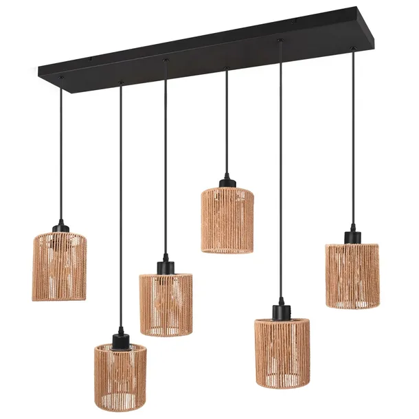 Chcesz wprowadzić do wnętrza ciepło, charakter i odrobinę oryginalności? Lampa wisząca APP1822-6CP to idealne rozwiązanie dla tych, którzy cenią naturalne materiały i designerskie formy. Klosze wykonane z jutowego sznurka tworzą przytulną atmosferę, a ich lekka, ażurowa forma nadaje wnętrzu świeżości.