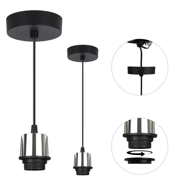 LAMPA WISZĄCA SUFITOWA LINKA MONTAŻOWA DO LAMPY CZARNA CHROM E27 102.5CM