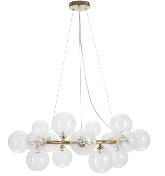 Lampa wisząca wykonana została ze szkła i metalu. Lampa posiada popularniejszy gwint przeznaczony do żarówek G9.